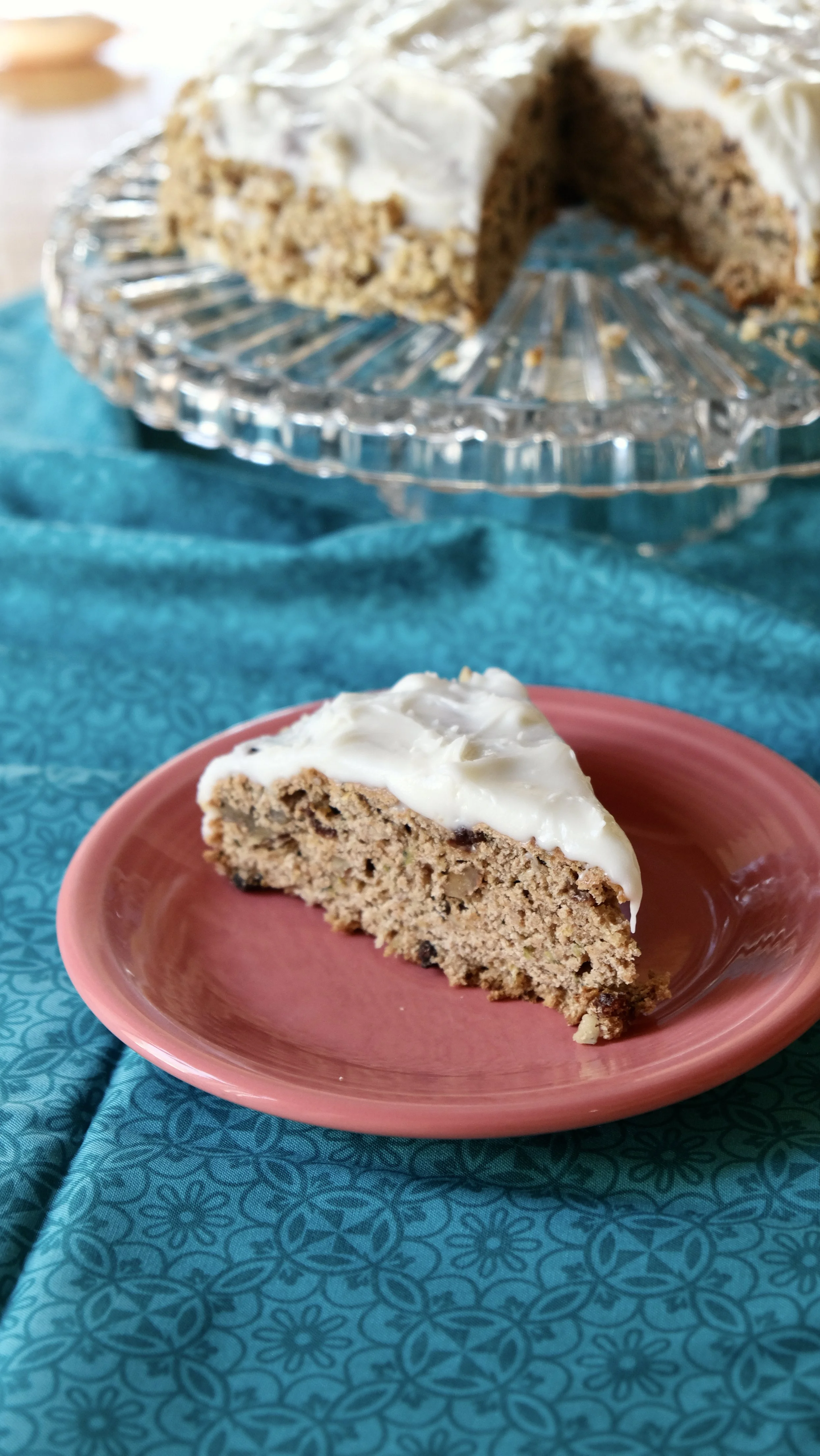 Whether it is roasted, fried, sautéed, baked, grilled, stewed, pickled or raw, zucchini can unlock culinary creativity because you can do so many things with it. However, for me, there comes a time in the late summer when I just run out of ideas. Or, I get in a rut and do the same recipes over and we end up eating a lot of pasta with zucchini. When this happens, and my sweet husband grows sick of noodles, I start to grate my zucchini and freeze it in 2-cup baggies to be cooked and added to things later. On the first day of grating the zucchini, we make the zucchini cake as a celebration of the harvest of the many fruits and vegetables (including more zucchini) on the horizon.