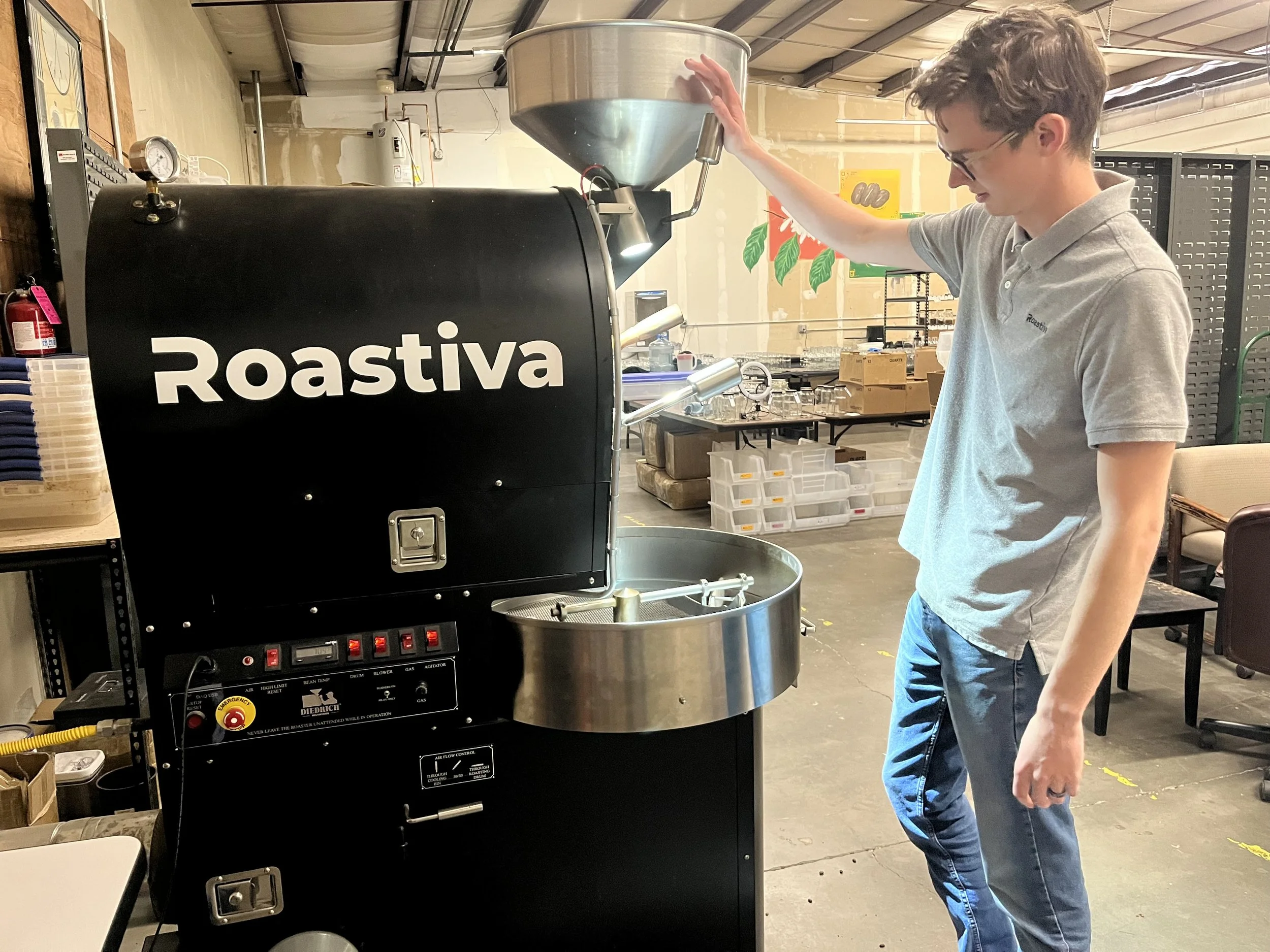 Josiah Abshear tends his roaster at Roastiva in Grand Junction. Photo by Sharon Sullivan.