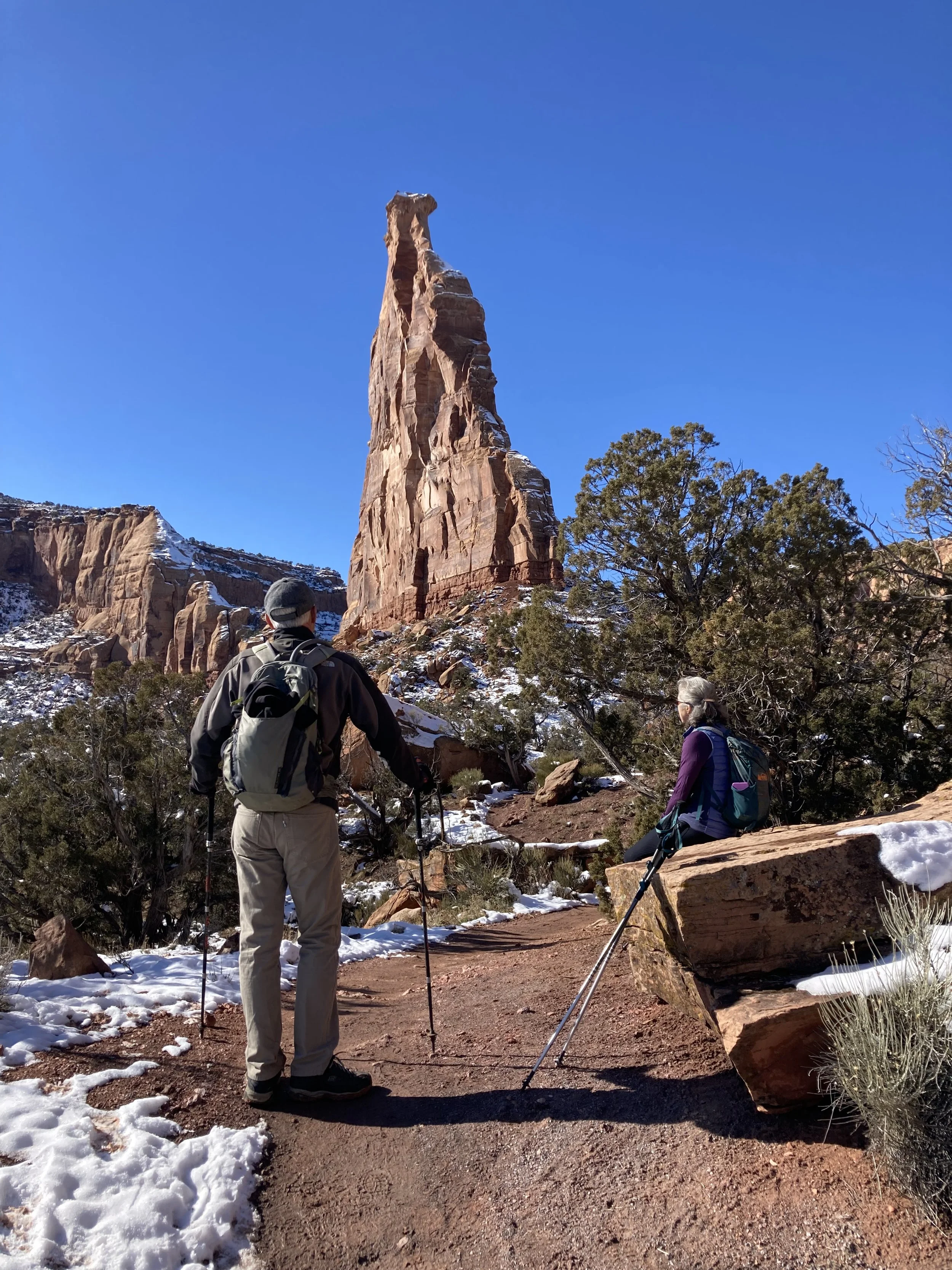 Other tempting options include tracing the primitive, rough circumference of Independence Monument’s base, turning right to descend the shady, unimproved Wedding Canyon Trail for a loop or continuing left another 3.5 miles for a one-way through hike to Rim Rock Drive, which requires a shuttle.