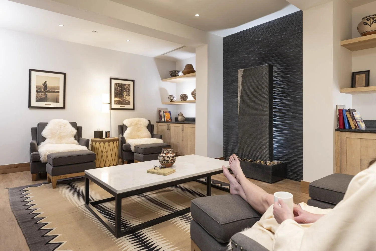 While my husband skied some afternoon laps, I headed to the spa at The Blake Spa & Wellness Center for an alpine facial, a blissful reset after back-to-back ski days and late-night feedings. Later, we reunited as a family to stroll through the base area, stopping to peek into shops, for a snack at Cid’s Market and to warm up by the fire pits.